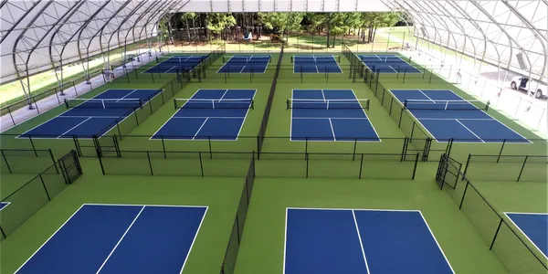 Khoảng cách giữa 2 sân Pickleball: Với các cụm sân tại Từ Sơn hay TP. Bắc Ninh, khoảng cách giữa 2 sân Pickleball nên đạt mức 4m. Khoảng cách này đủ để bố trí hàng rào lưới ngăn bóng và ghế chờ cao cấp cho vận động viên nghỉ ngơi giữa hiệp.